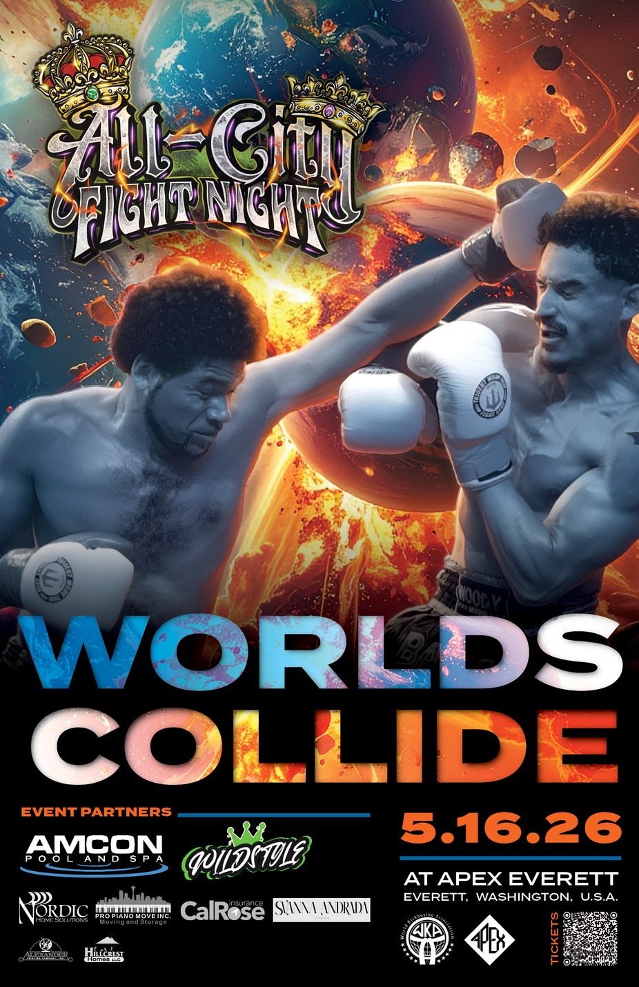 Get ready for an adrenaline-fueled night at All City Fight Night: Worlds Collide! The card is stacked with hard-hitting fights, featuring fighters from across the Pacific Northwest and beyond! Every bout is action packed and full of skill. Bring your crew and witness epic showdowns live!